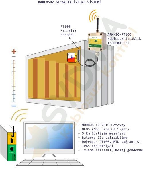 SYDMA Kontrol'ün, ARM-IO-PT100 tipi, kablosuz sıcaklık sensörü, kendi üzerindeki sıcaklık sensörünü